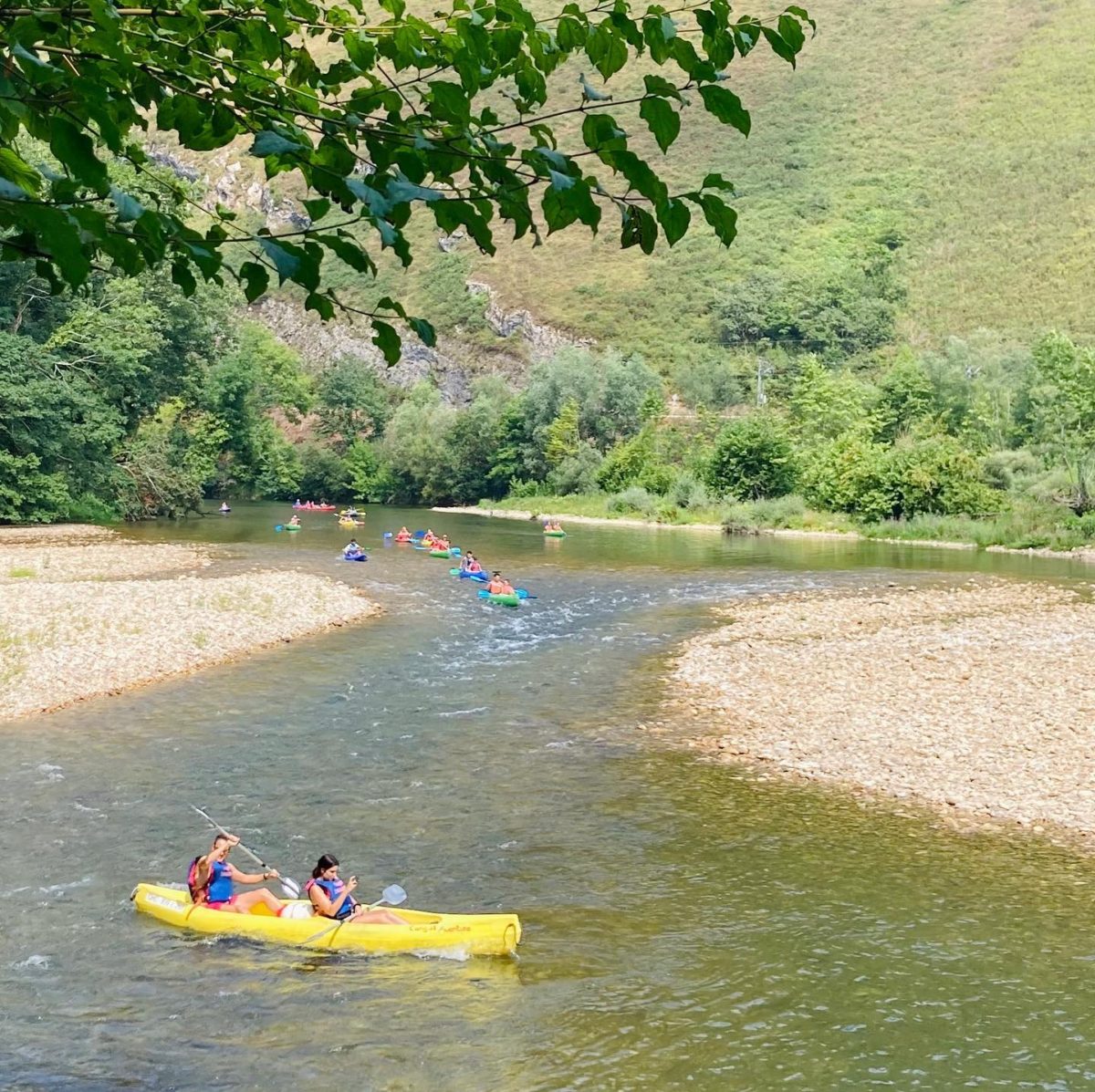 Nuestra actividad estrella es el Descenso del Sella en canoa, para la que te proporcionamos todo el material y transporte. El recorrido total es de 4 horas, aunque tenemos paradas a las 2 y 3 horas. Puedes hacer descansos en las numerosas playas fluviales que encontrarás a lo largo del río. Te esperaremos al final del recorrido, para devolverte a nuestras instalaciones, donde podrás darte una ducha y cambiarte de ropa.